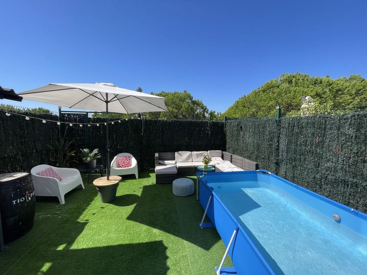 Volledig gerenoveerd terras aan de voorzijde van meer dan 30 m², afgewerkt met een betonnen vloer en onderhoudsarm kunstgras. Een pergola met geïntegreerde gasbarbecue maakt het de ideale plek voor bijeenkomsten met vrienden en familie.
