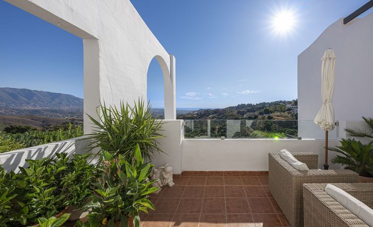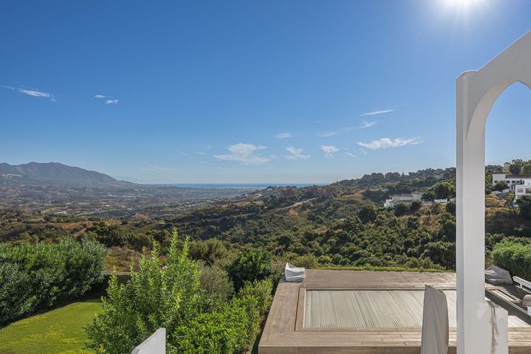 Ontdek uw droomhuis in de heuvels van Elviria Alta / La Mairena, waar adembenemend uitzicht op zee en de bergen samenkomen met de sereniteit van de natuur en de elegantie van het mediterrane leven.