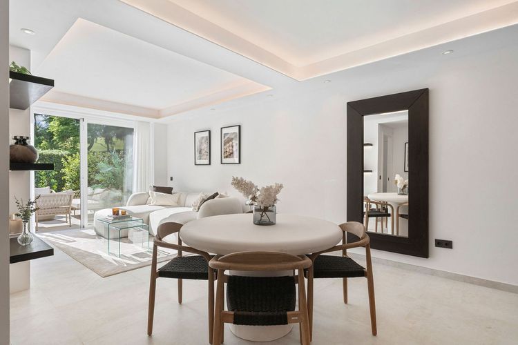 Het appartement is gelegen op één verdieping en wordt gekenmerkt door een licht interieur, gecreëerd door royaal gebruik van kamerhoge ramen en een open indeling. Elk van de drie slaapkamers heeft een eigen badkamer, wat een privé en serene omgeving biedt voor bewoners en gasten. Het interieur wordt gekenmerkt door strakke architectonische lijnen, warme houten afwerkingen en een lichtneutraal kleurenpalet dat het gevoel van ruimte versterkt. De toevoeging van een gastentoilet draagt bij aan de functionaliteit van de woning. Deze woning, die naar verwachting in 2025 volledig gerenoveerd zal worden en volledig gemeubileerd opgeleverd zal worden, garandeert een kant-en-klare ervaring voor kopers die direct comfort en modern gemak zoeken.