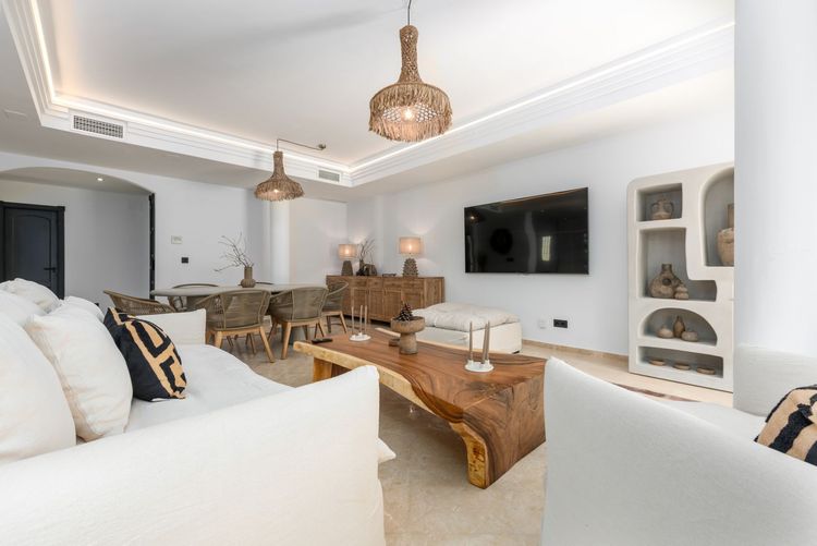 Ruim en licht, met een prachtige, volledig uitgeruste open keuken en een grote woon-/eetkamer met een adembenemend uitzicht op de magnifieke golfbaan van San Roque. Zowel de keuken als de woonkamer zijn voorzien van grote glazen schuifdeuren die uitkomen op een ruim terras van meer dan 70 m² en een privétuin van in totaal 379 m², met uitzicht op de golfbaan.