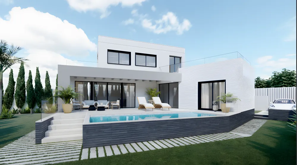 NORDIC presenteert een exclusieve, vrijstaande, nog te bouwen woning in Santangelo Norte, Benalmádena Costa. Deze moderne, efficiënte en hoogwaardige woning staat op een ruim perceel van 510 m². Met een bebouwde oppervlakte van 213 m² en drie slaapkamers is deze woning ontworpen voor hedendaags wonen aan de Costa del Sol. De woning beschikt over een bestaande bouwvergunning, wat een gestroomlijnd ontwikkelingsproces garandeert. Het is een uitzonderlijke kans voor zowel veeleisende huiseigenaren als slimme investeerders.