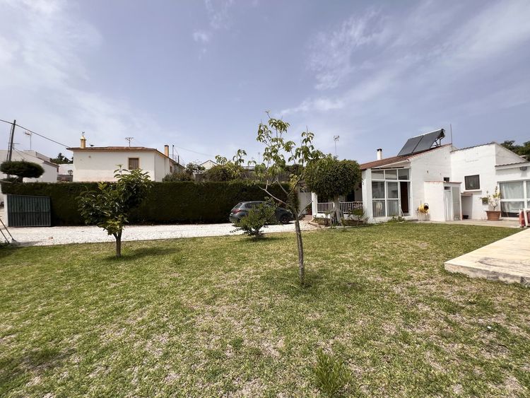 The plot is flat and on entering we find the garage, following the road we reach the porch of the main house, barbecue area and three more rooms that are currently used as bedrooms with a bathroom. The porch is covered and gives access to the entrance of the house. The main house is distributed in a living-dining room next to the kitchen with three large bedrooms and two bathrooms, one of them en suite. Next to the porch we find the barbecue area that leads to the area where the three bedrooms with a bathroom are located. On the right side of the main house is the swimming pool with a shower and toilet area. There is also a large storage room in this area.