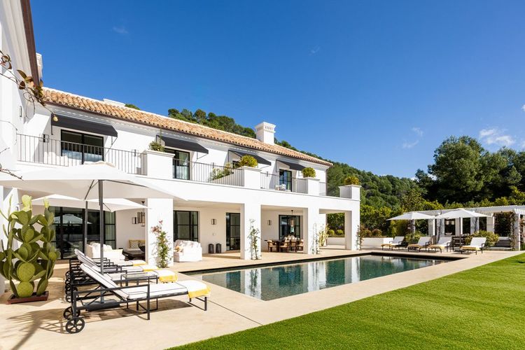 Created by the acclaimed architect behind Finca Cortesín, the villa’s nude-toned exterior radiates serenity and peace, offering a calming atmosphere for its residents. The gardens are a true oasis—perfect for hosting gatherings and making the most of Marbella’s 320 days of sunshine. Colorful floral walls frame the property, adding vibrancy and seamlessly blending the natural surroundings with the estate.