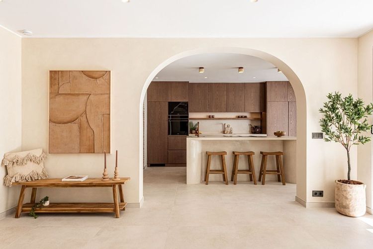 Another particularly special feature is the original rustic arches, crafted from bricks now serving as a beautifully illuminated wine bodega. This element has been carefully preserved from the original house as a tribute to the home’s heritage while enhancing its warm and inviting atmosphere.