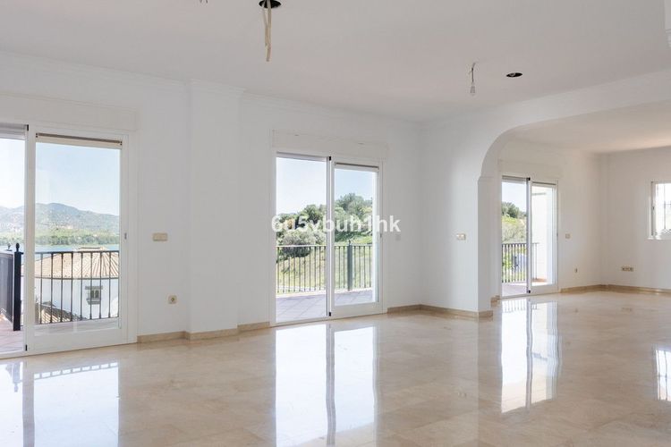 Sommige huizen hebben uitzicht. Dit huis heeft een meer aan de voet, een bergketen als omlijsting en een stilte die je ademhaling verandert. Een villa in Andalusische stijl met een moderne ziel, gelegen boven de oevers van Embalse de la Viñuela – het grootste stuwmeer van Málaga – met een ononderbroken uitzicht op het water en de bergen in alle richtingen. 400 m² woonoppervlak. Een omheind perceel van 4.230 m². Zes slaapkamers, vijf badkamers, meerdere terrassen, een zwembad, een grote garage en een volledig zelfstandig gastenverblijf. De proporties zijn royaal. De omgeving is ingetogen en buitengewoon. De bovenste verdieping is volledig gewijd aan de master suite – minder een slaapkamer, meer een privéwereld. Grote en-suite badkamer met douche en jacuzzi. Een ruim terras met direct uitzicht op het zwembad, de tuinen, het meer en La Maroma daarachter. Niets dat het verstoort. En dat zal ook nooit gebeuren. Op de begane grond speelt het dagelijks leven zich moeiteloos af. Een open woon-, eet- en keukenruimte omringt een open haard en komt direct uit op het terras aan de voorzijde – die naadloze overgang tussen binnen en buiten die een huis echt leefbaar maakt. Een zij-ingang naar de keuken zorgt voor een prettige sfeer. Drie extra slaapkamers bevinden zich in de linkervleugel: één met een eigen badkamer, inloopkasten en hetzelfde uitzicht op het meer, directe toegang tot het terras en het zwembad; de andere twee delen een ruime gezinsbadkamer, beide met ingebouwde kasten. Een gastentoilet completeert deze verdieping. Beneden onthult het huis zijn praktische waarde zonder zijn karakter te verliezen. Een wasruimte, speelkamer of berging, een dubbele garage met ruimte voor motoren en meer. En aan één kant een volledig zelfstandig appartement – twee slaapkamers, badkamer, keuken, woonkamer, grote openslaande deuren naar het zwembad en een eigen ingang. Voor familie. Voor gasten. Voor iedereen die behoefte heeft aan een eigen ruimte binnen uw huis. Overal: zandkleurige marmeren vloeren en badkamers, elektrische rolluiken voor alle ramen, centrale verwarming en koeling. De verkoper heeft de keukens, zonnepanelen, domotica en tuin overgelaten aan de koper voor verdere afwerking. Niet omdat het huis onafgewerkt is, maar omdat de beste eigenaren zelden de smaak van iemand anders willen overnemen. De echte luxe zit hem echter niet in dat alles. Het is het licht op het water in de ochtend. De bergen bij zonsondergang. De lunches op het terras die veel te lang duren. Kinderen die opgroeien met ruimte, lucht en vrijheid. Een leven met een mooier ritme – en toch op slechts 35 minuten van Málaga, 20 minuten van de kust en 40 minuten van de luchthaven. Dit is een familiehuis voor mensen die een goede keuze hebben gemaakt.