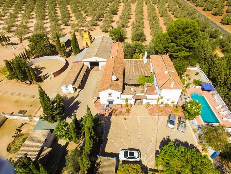Rozległa finca jeździecka z 7 stajniami, padokami, drzewami oliwnymi i pokojami gościnnymi.