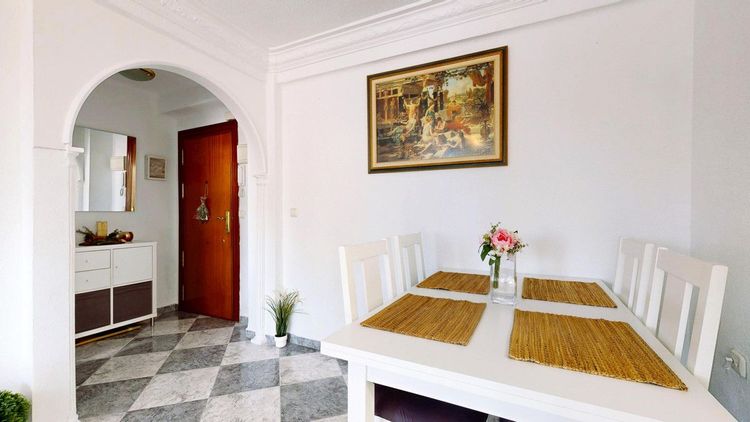 Our property has three bedrooms and one bathroom, a fitted and partially equipped kitchen, a living room with south-west facing windows, which is very bright, and air conditioning in the living room and one of the bedrooms. All rooms, except the bathroom, are exterior. The bathroom has a shower and it is also important to note that both the property and the building are adapted for people with reduced mobility.