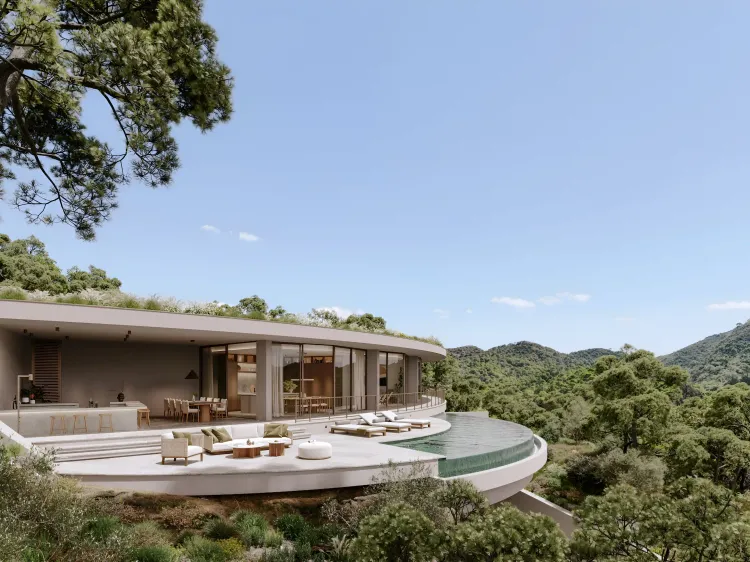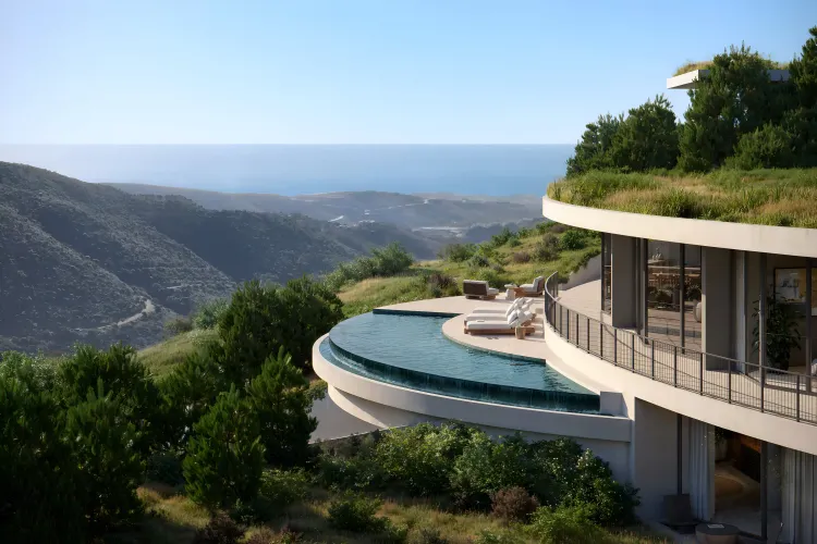 Vitae Villa I3 to ekskluzywny, luksusowy kompleks willowy położony w prestiżowej dzielnicy Monte Mayor w Benahavís na Costa del Sol. Projekt, zrealizowany przez Vitae Villas, stanowi rzeźbiarskie cudo harmonijnie wkomponowane w naturalne otoczenie. Łagodne kształty willi tworzą zapierające dech w piersiach widoki na bujne doliny, porośnięte sosnami podnóża wzgórz i Morze Śródziemne. Willa oferuje spokojny, całoroczny wypoczynek dzięki otwartemu, organicznemu układowi, który zaciera granice między przestrzenią wewnętrzną i zewnętrzną. Willa oferuje 5 sypialni, 5 łazienek, liczne przestronne tarasy, spokojny basen bez krawędzi, siłownię i spa oraz wysokiej jakości wykończenia.