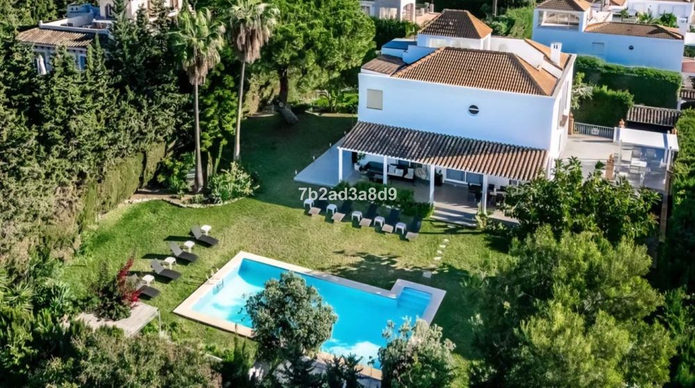 Situated in the exclusive residential enclave of Las Brisas, Nueva Andalucía, Marbella, this elegant villa enjoys a privileged position at the end of a quiet cul-de-sac, ensuring exceptional privacy and tranquility. The property occupies a generous 1,279 m² square plot, surrounded by mature landscaping and distinctive architectural details.
