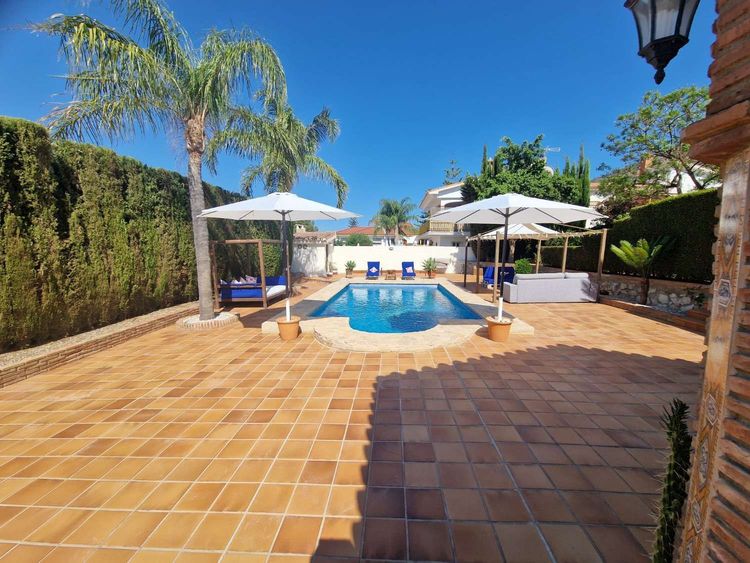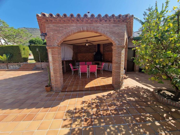 For sale in one of the most sought after urbanizations of Alhaurin de la Torre with walking access to shops, schools, bus stop. On a fenced plot of 1000 meters the villa consists on the ground floor of a living room with fireplace, a double-room dining room, a very large fully equipped high-level kitchen with its dining room and a toilet; on the first floor there are three double bedrooms with built-in wardrobes, two bathrooms, the suite has its own bathroom with dressing room, a fully fitted basement with living room, games room, bar, bedroom, bathroom, sauna, storage room and laundry room, on the plot there is a large swimming pool, built-in barbecue area with summer kitchen, 1 bathroom with shower, several car spaces on the plot, automatic gate, air conditioning throughout the house, double glazed windows, blinds. High-level villa in perfect condition ready to move into immediately.