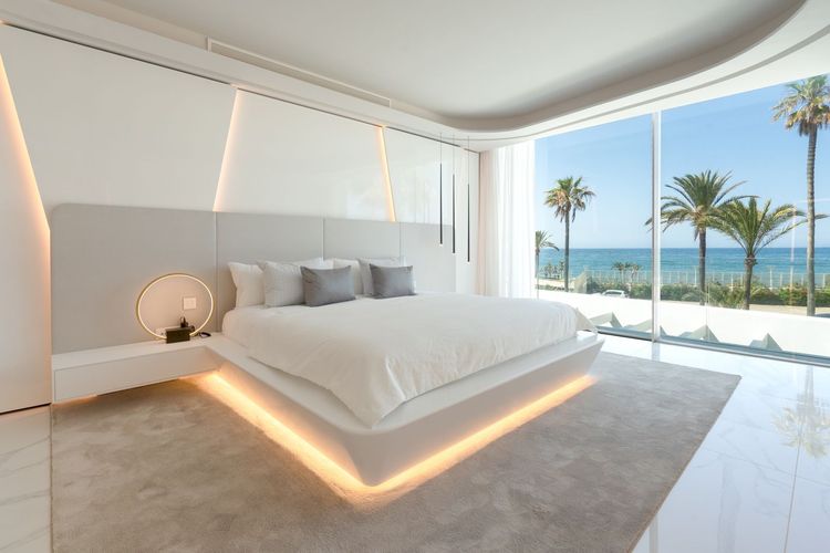 Located in this exclusive neighborhood, the villa enjoys a privileged beachfront location, offering privacy and breathtaking panoramic views of the Mediterranean Sea.