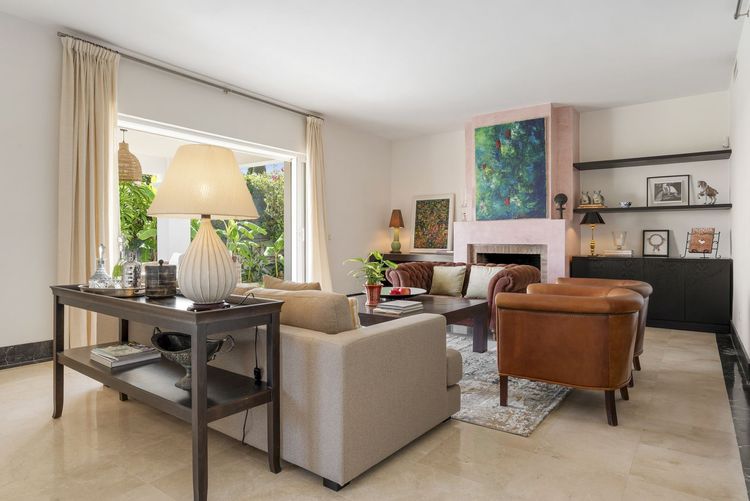 This villa in Nueva Andalucía beautifully combines Andalusian architecture with antique accents and subtle Moroccan touches, creating a home full of warmth and character.