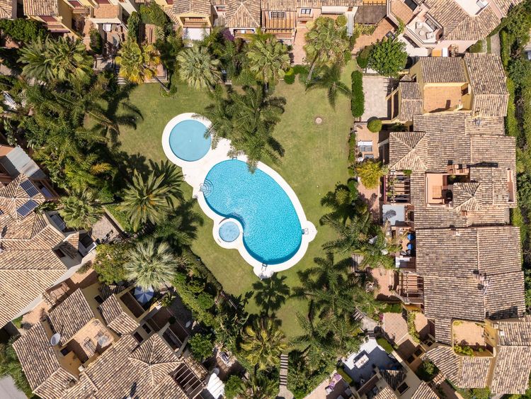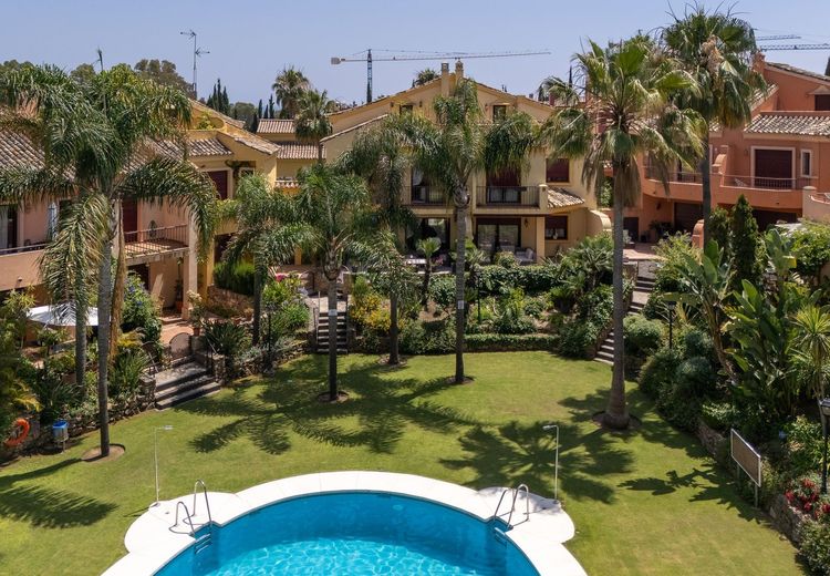 EXCLUSIVE! Discover this wonderful semi-detached house located in an exclusive private Andalusian-style urbanization, right in the heart of the coveted Golden Mile of Marbella. A true gem that blends traditional charm with modern touches, thanks to a carefully executed partial renovation.