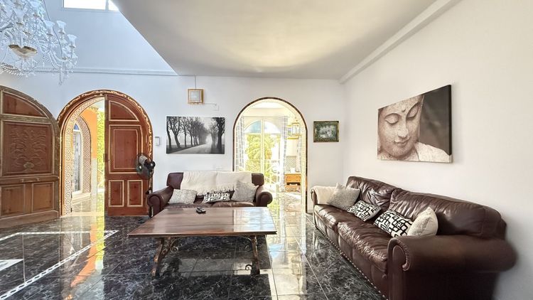 Unique Moroccan-Style Villa with Charm, Space & Character. A truly rare opportunity to own a one-of-a-kind Moroccan-style villa, beautifully renovated (except the kitchen) with meticulous attention to detail while preserving its authentic charm. Located within walking distance to all amenities, this spacious property offers both timeless elegance and modern comfort. The villa features 5 generous double bedrooms and 4.5 bathrooms, with two of the bedrooms enjoying attached rooms ideal for a home office or study. The top two bedrooms are exceptionally large, perfect as private retreats. There is a private swimming pool, mature fruit trees. Inside, the air-conditioned villa includes a basement entertainment level with a home cinema, pool table, and table tennis area. While the kitchen awaits a personal touch, the rest of the home has been recently renovated to a high standard. The property also includes a private garage and holds a tourist rental license, adding investment potential to its unique lifestyle offering. A truly special home full of personality, space, and style ready to be enjoyed as a private residence or luxury holiday retreat or rentals.Building Details
