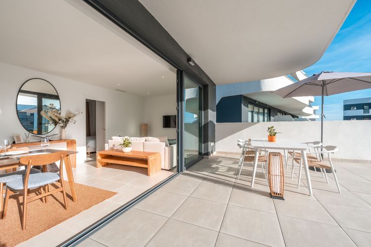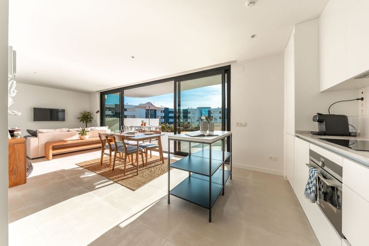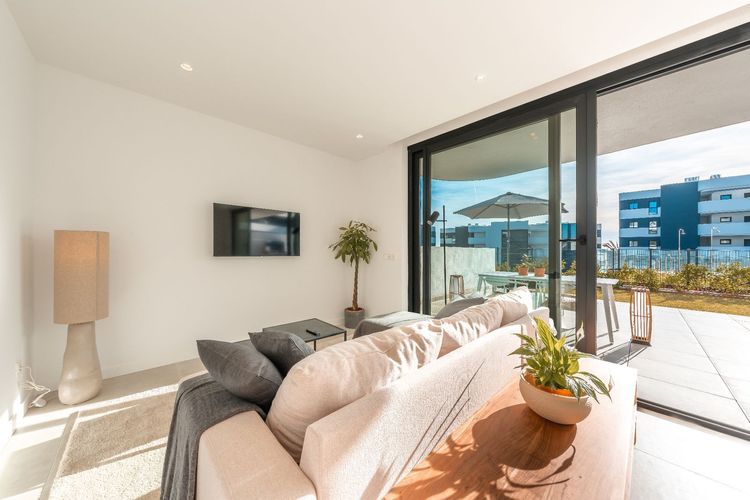 Welcome to this serene and stylish ground-floor apartment that captures the essence of contemporary Mediterranean living. This beautifully presented two-bedroom, two-bathroom home combines modern design with warm natural tones and abundant light, creating an inviting and relaxing atmosphere from the moment you enter.