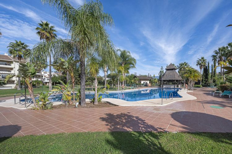 Situated just 10 minutes from San Pedro de Alcántara and 20 minutes from Marbella, the property is set in a quiet area surrounded by other residential developments and villas. The terrace offers views over the urbanization and its gardens.
