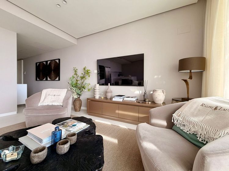 This elegant 2-bedroom first floor apartment for sale is located in the exclusive Granados development, set on the highest plot within the gated community of Palo Alto, Ojén, and enjoys beautiful panoramic sea views over Marbella and the Mediterranean.