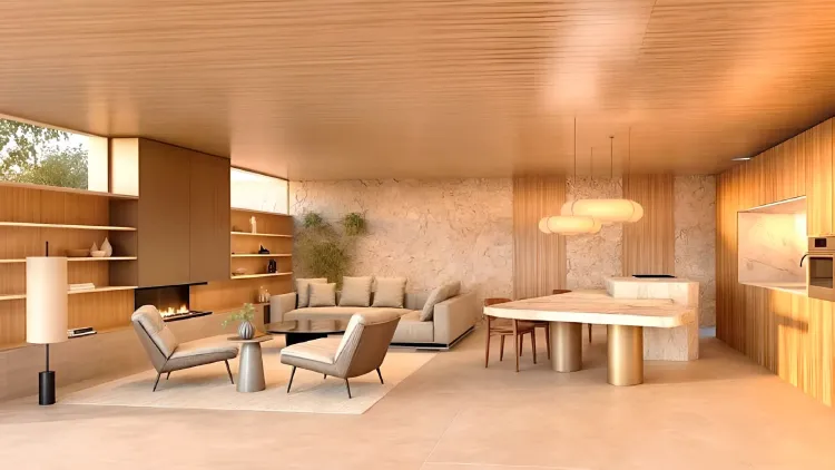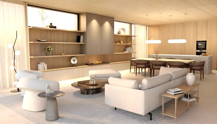 Open-Plan Layout: Interiors crafted with precision, combining sophisticated aesthetics with functional design, connecting the kitchen, living, and dining areas.