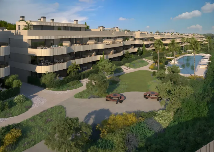 Nyra Residences embodies a commitment to 21st-century sustainable design by Domingo Corpas, integrating architecture, technology, and nature for timeless style and functionality. Developer Brosh invests €125 million in Estepona's premium sector, launching Nyra in pre-launch phase alongside Naya Residences to meet international demand for eco-conscious luxury. The project prioritizes wellbeing, resource efficiency via smart sensors and LED lighting, and landscape harmony, achieving top environmental certification for long-term value.