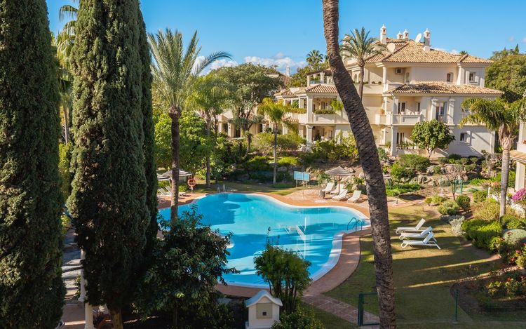 This exceptional and exquisitely designed southwest-facing duplex penthouse offers a stunning panoramic view of the award-winning gardens of Las Alamandas, in Nueva Andalucía, providing an ideal balance of sun and shade across its expansive terrace spaces. Recently refurbished to the highest contemporary standards and incorporating the latest in home automation technology, this remarkable penthouse combines the privacy, luxury, comfort, and elegance of villa living with the added prestige and appeal of residing in one of Marbella’s most sought-after locations.